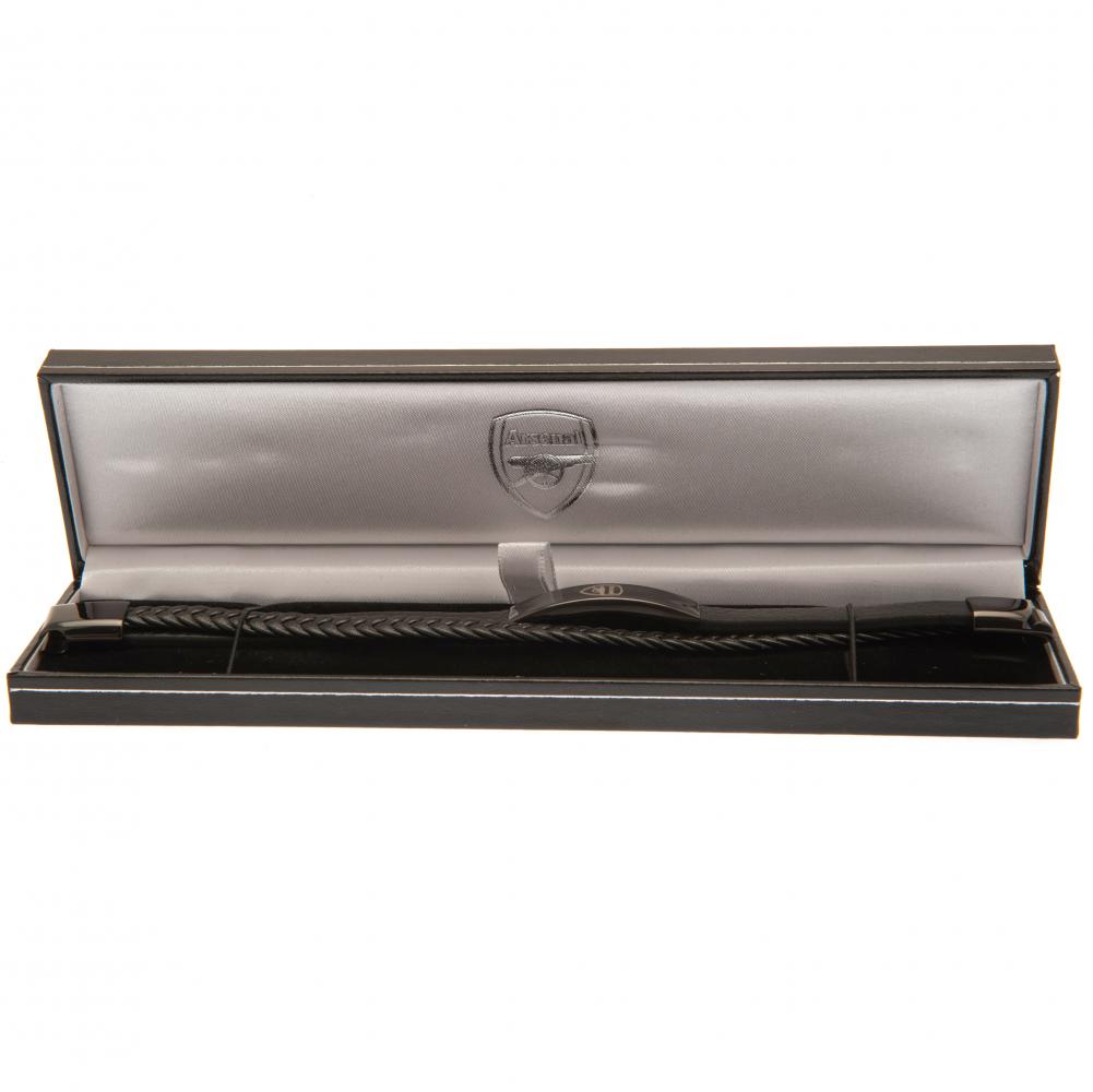 Twin design bracelet made from genuine leather With a stainless steel magnetic clasp Black IP crest plate with an engraved Arsenal logo