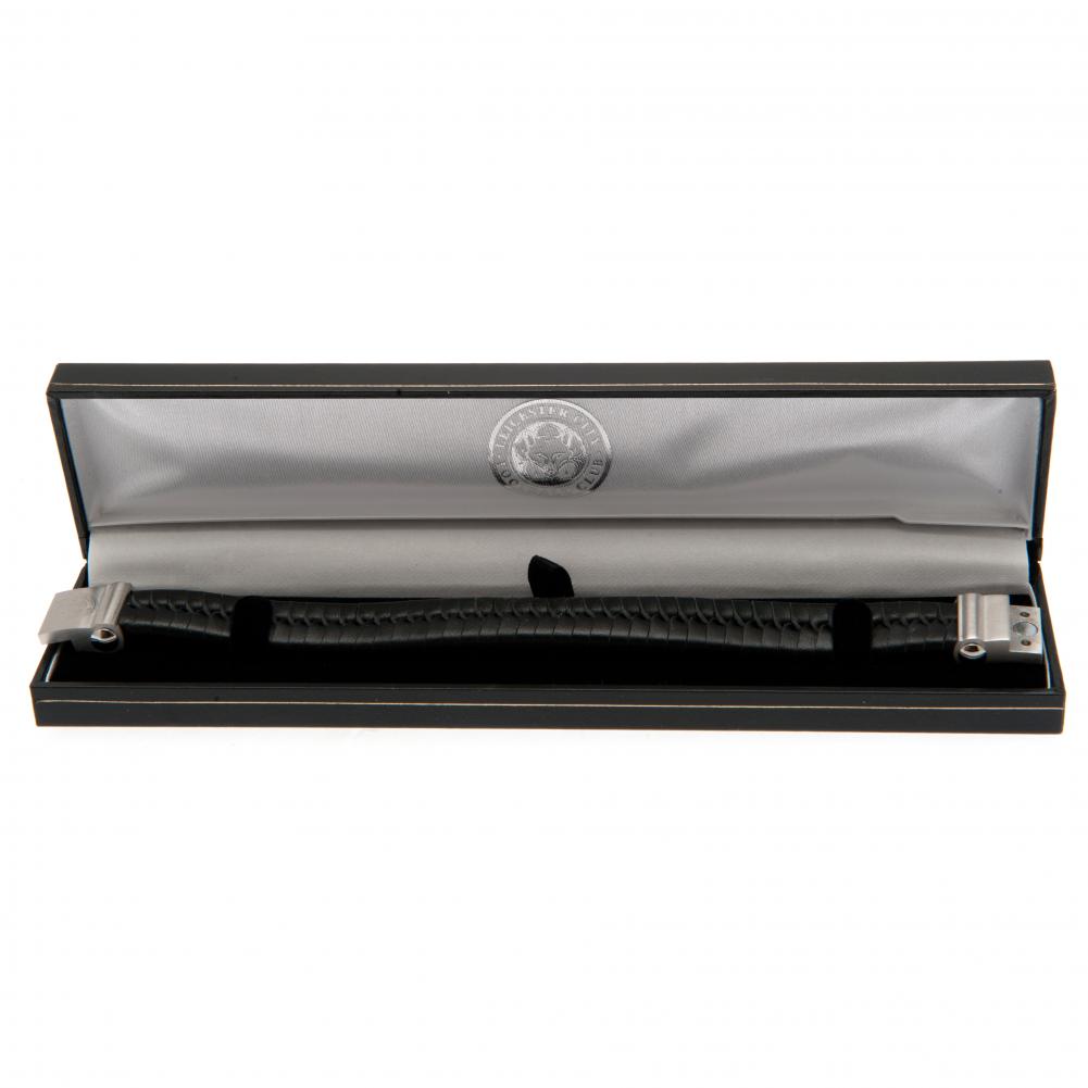 Black bracelet with a stainless steel magnetic clasp featuring and engraved club crest
