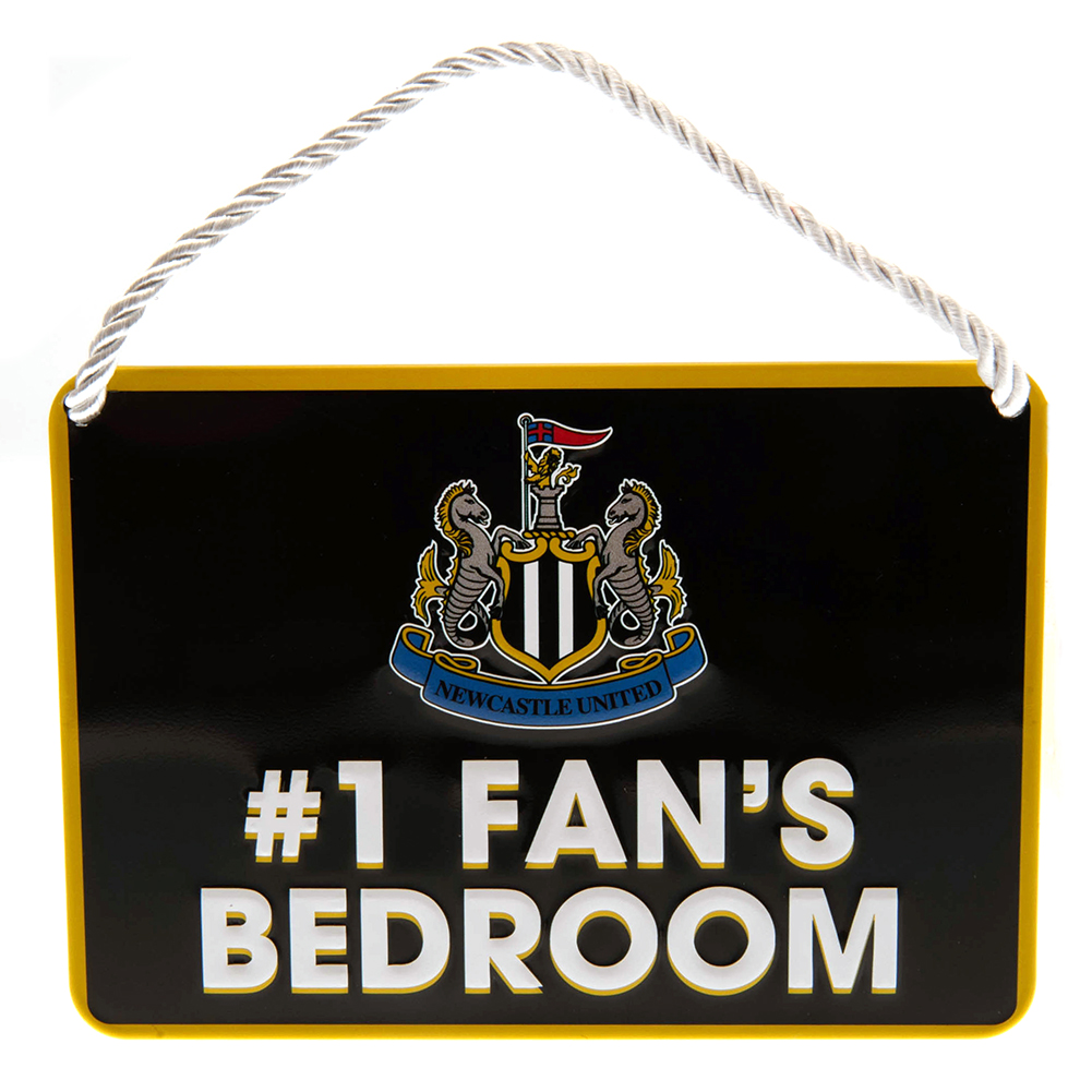 Vibrant metal hanging bedroom sign Complete with a nylon rope for hanging With a large club crest and #1 Fan’s Bedroom text